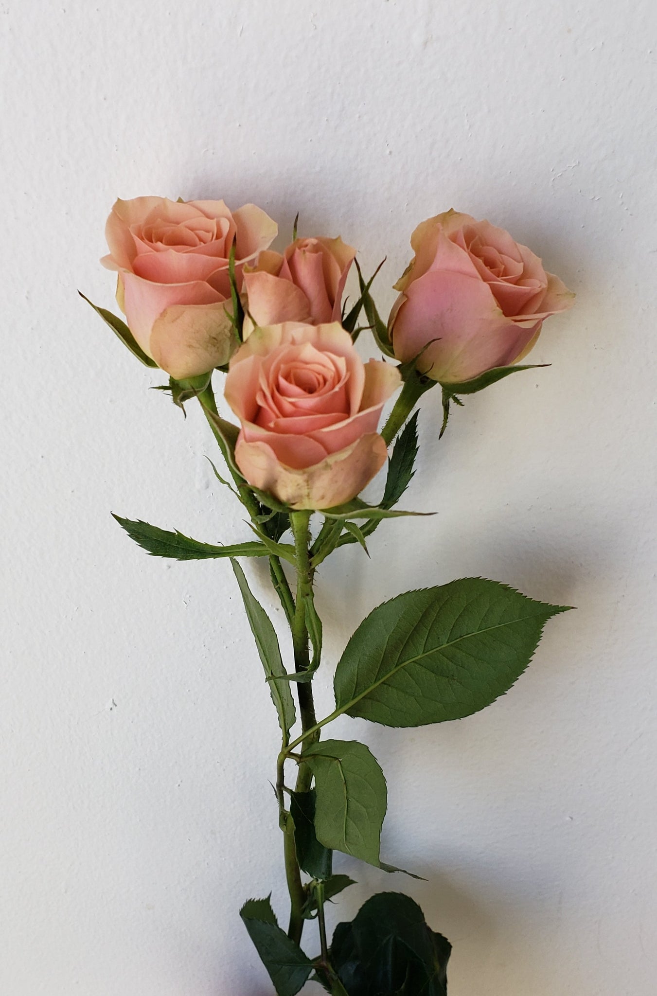 Each stem of spray rose has over 3 blooms per stem. These peach/coral color spray roses are perfect for any event.